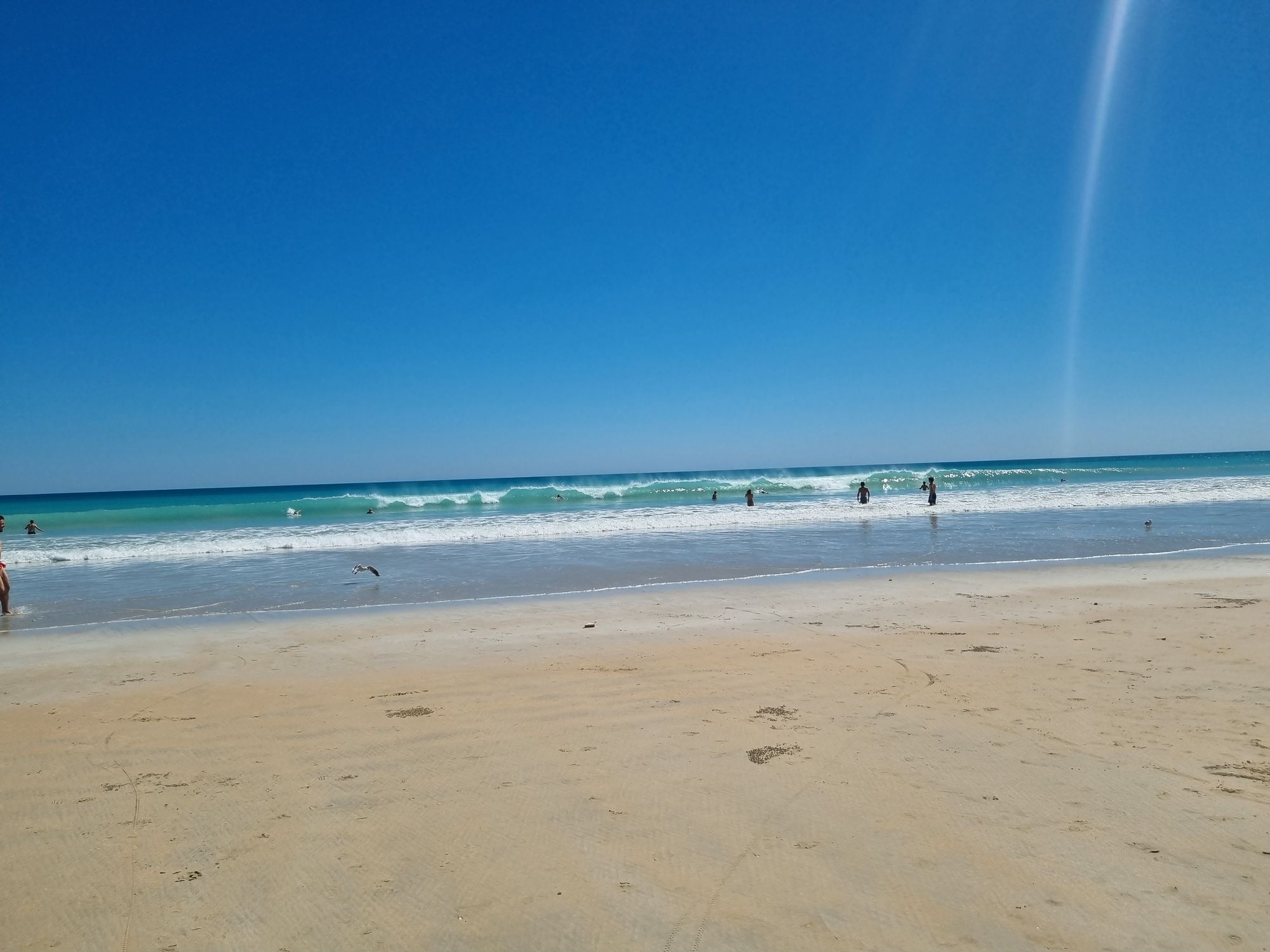 An hour in the water and I can feel myself cooking like bacon, better head up. I grab some fish and chips from the beachside takeaway and start working up the mental fortitude to put my riding jeans and jacket on in this heat....