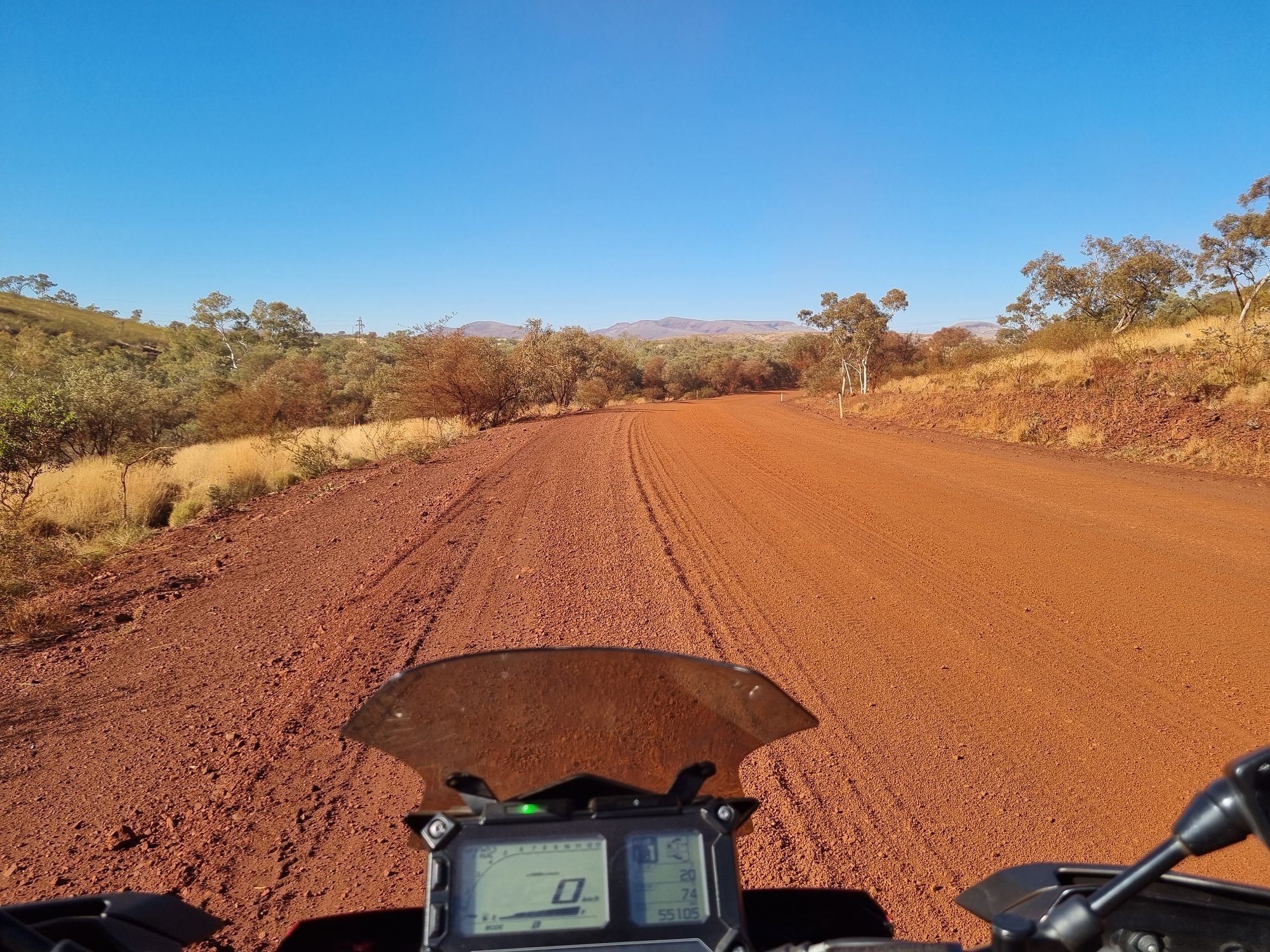 I pull up to examine the Street View and try and figure out if its like this the whole 270 km back to the highway. Before I do though, a helpful mine truck pulls up and tells me its unsealed another fifty kilometres to the junction with Paraburdoo Road, but he assures me the road smooths out after ten k's at the last mine turnoff.