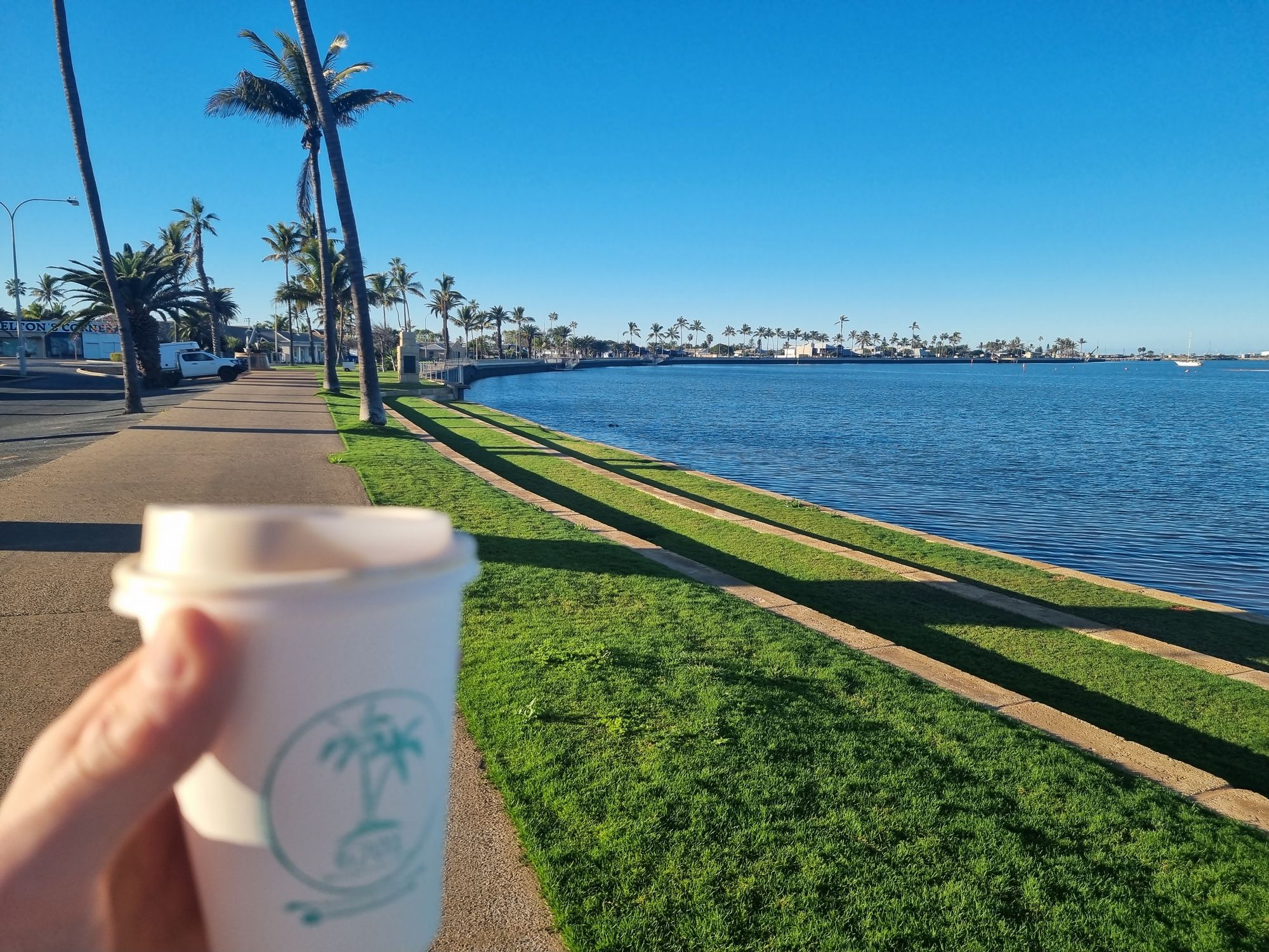 Morning walk along the Carnarvon foreshore to get some coffee. A delightful sign informs me the original retaining wall I walk on was built by aboriginal slaves in the late 1800s.