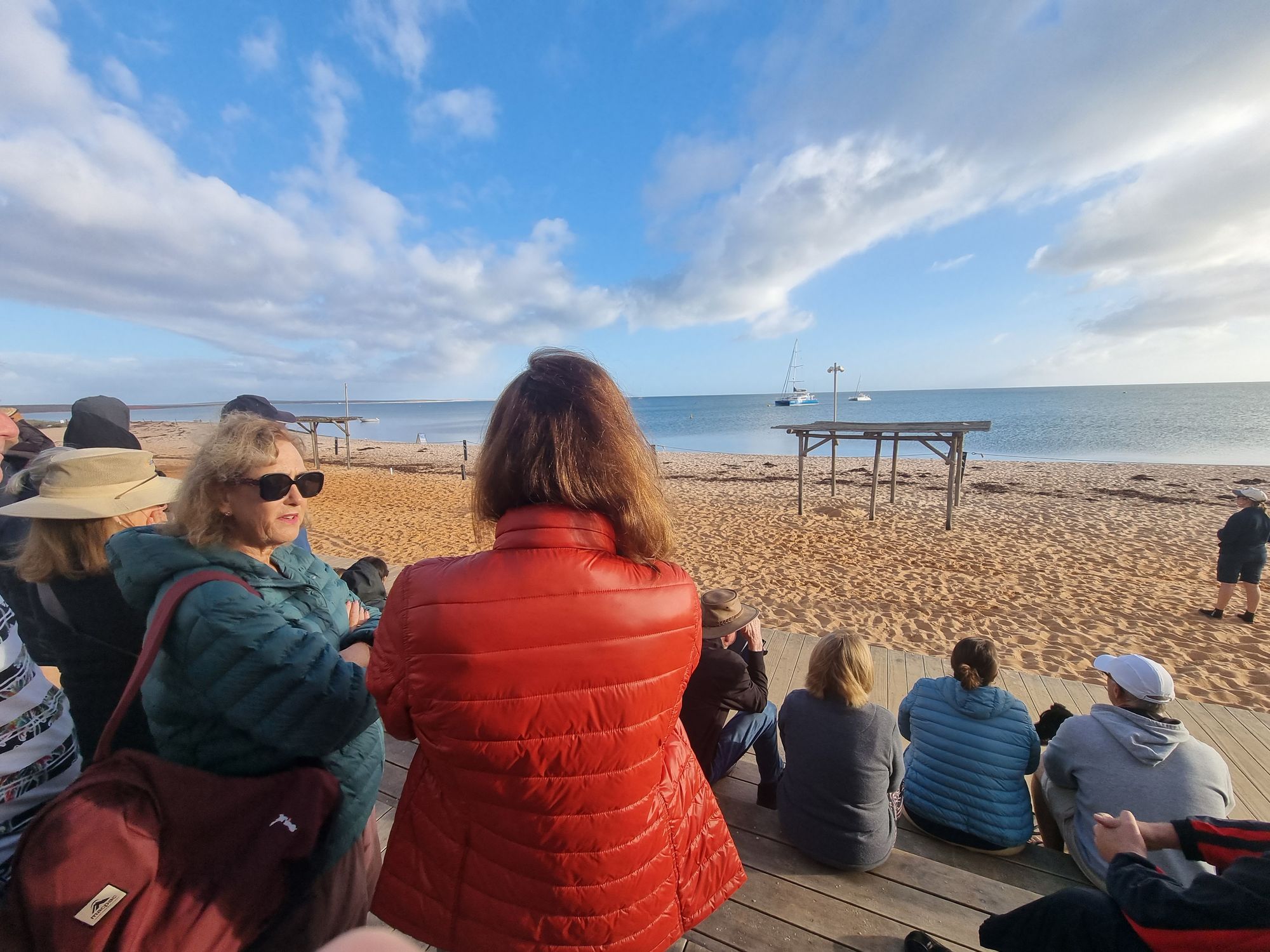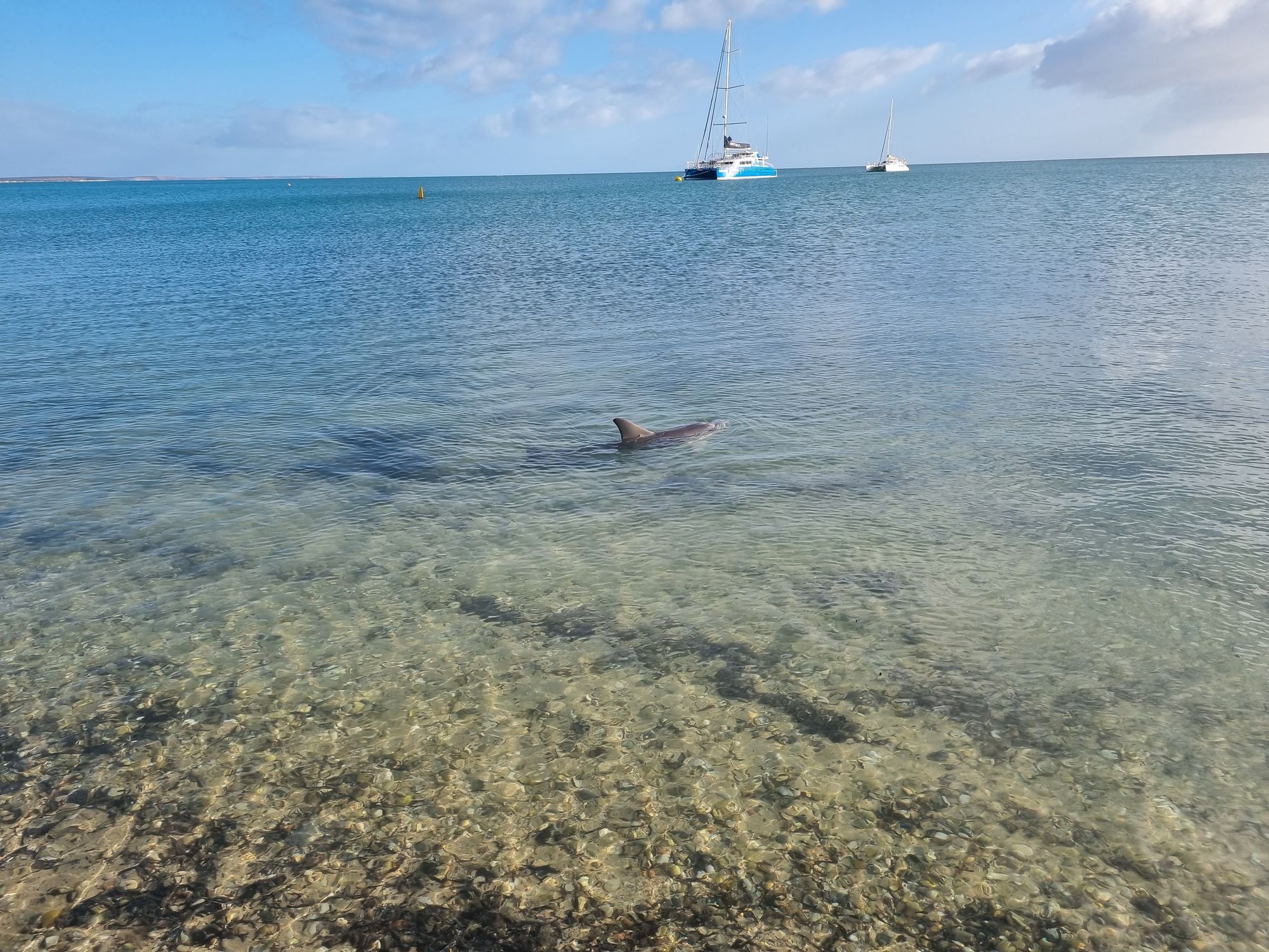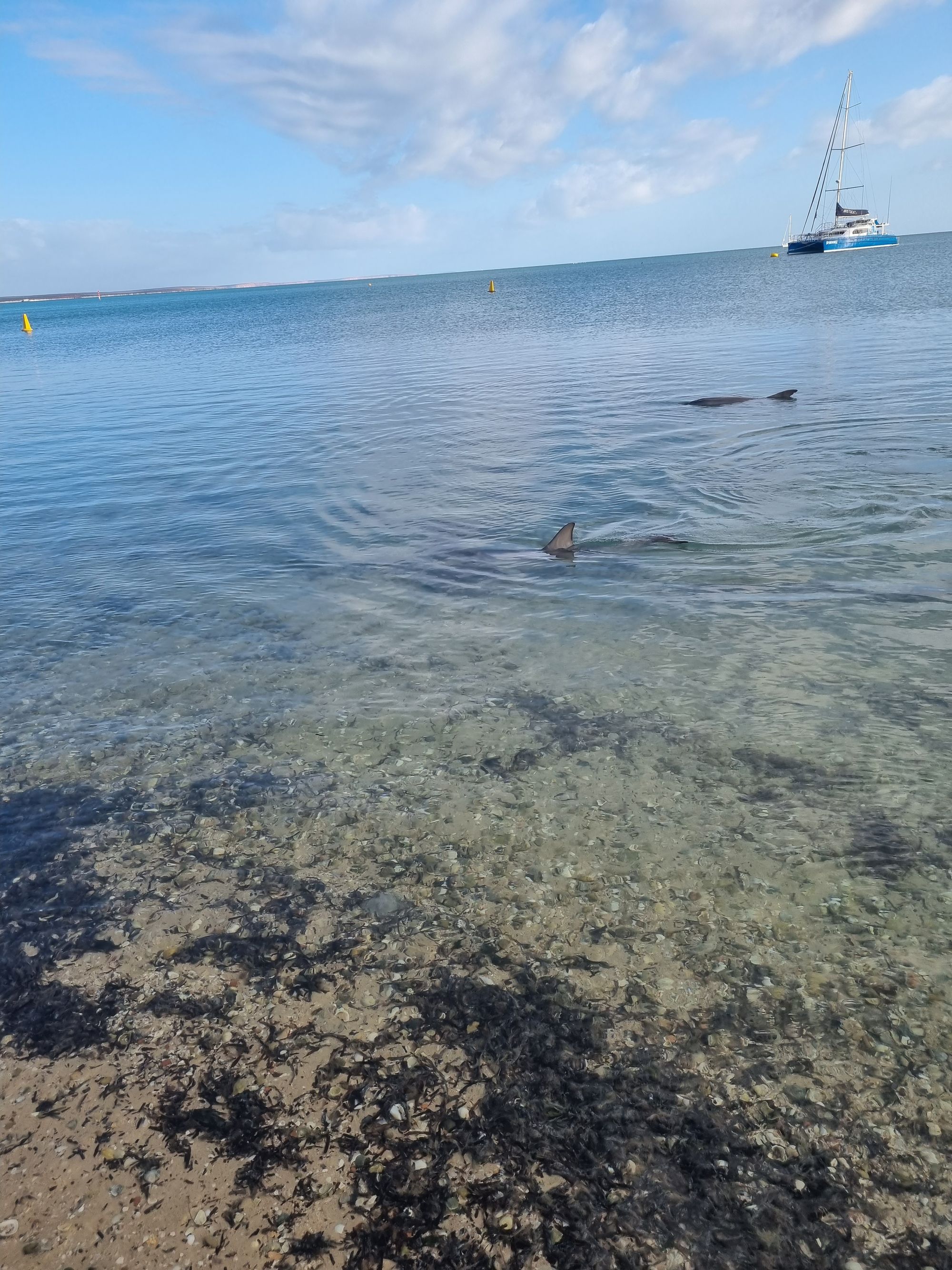 Anyway, every morning at Monkey Mia a bunch of dolphin come down to the jetty to fraternise with the Parks and Wildlife Rep and get a small feed. They've been coming here for fifty years.
