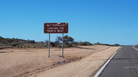 Bit further down I pass the 26th Parallel, for the third time, to officially and finally leave the North West.