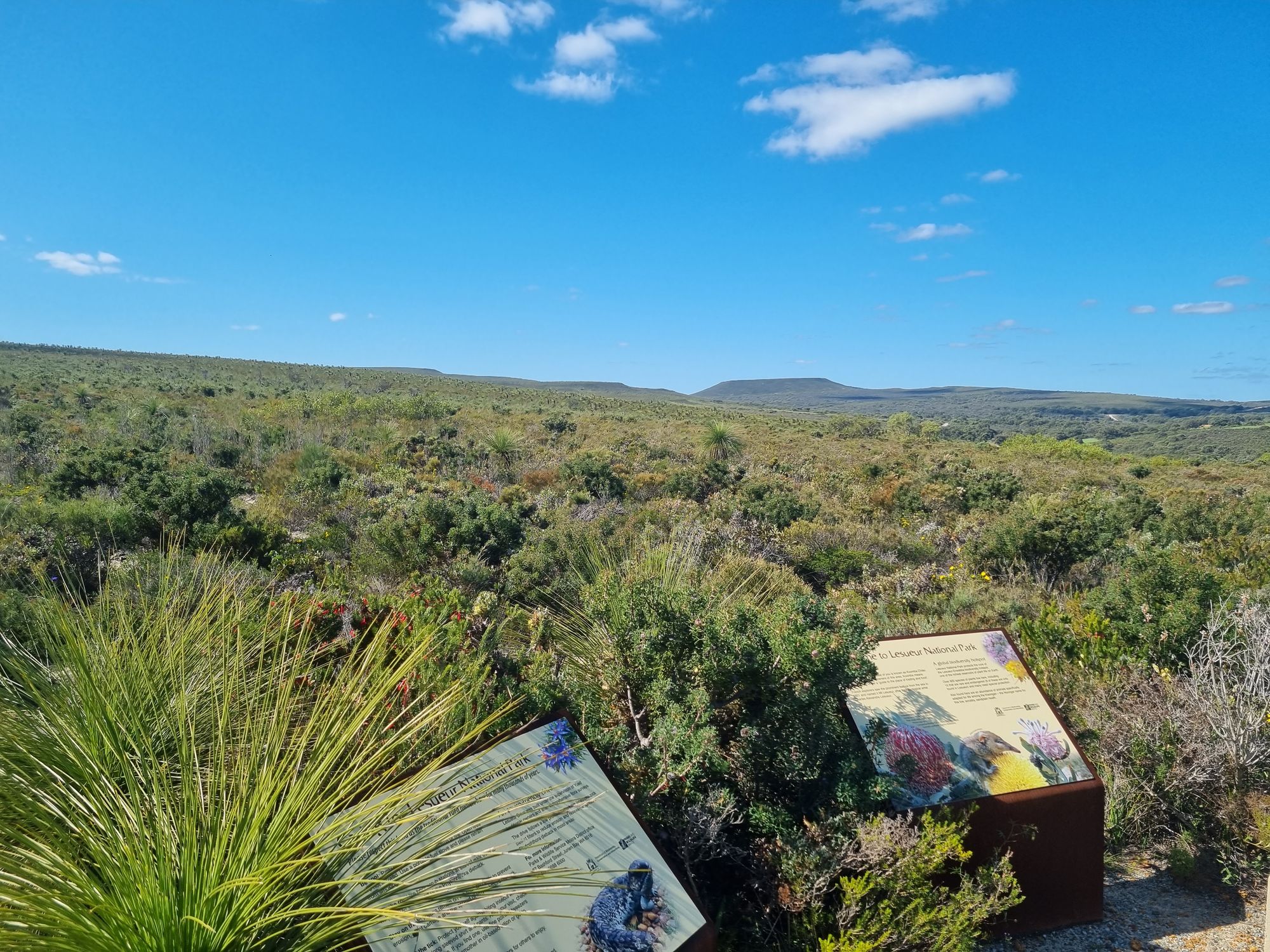 The park is an intriguing "drive through national park", where you drive a one way along an eighteen kilometre loop and roadside signs tell you about the park and certain plant species.