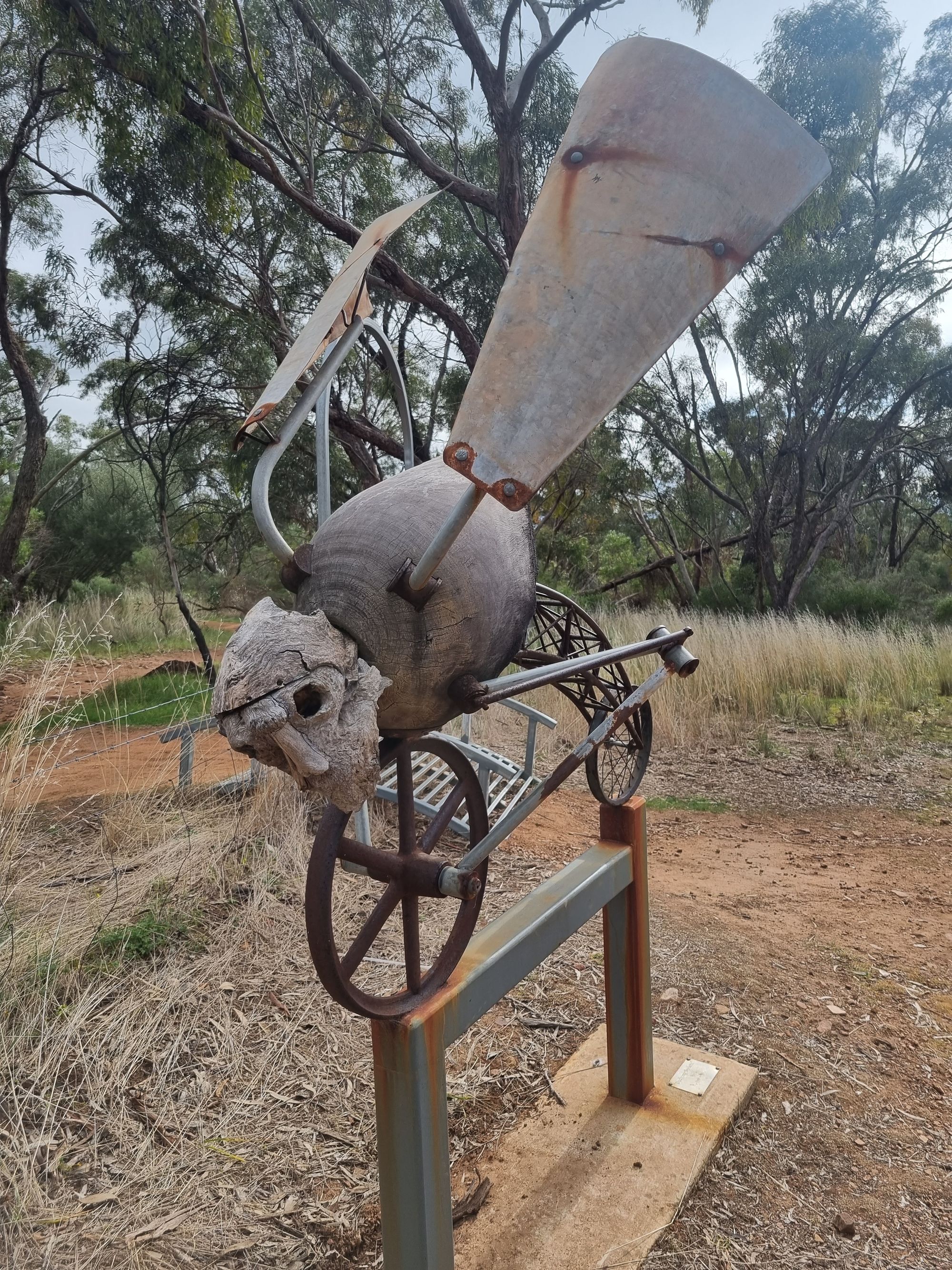 As well as being a hub to some of the lower Flinders Ranges hikes, Melrose is a bit of a Mecca for mountain biking, with trails weaving every which way. Surprisingly there's a group of kids hitting the trails before school. I find a creepy metal sculpture, presumably celebrating mountain biking.