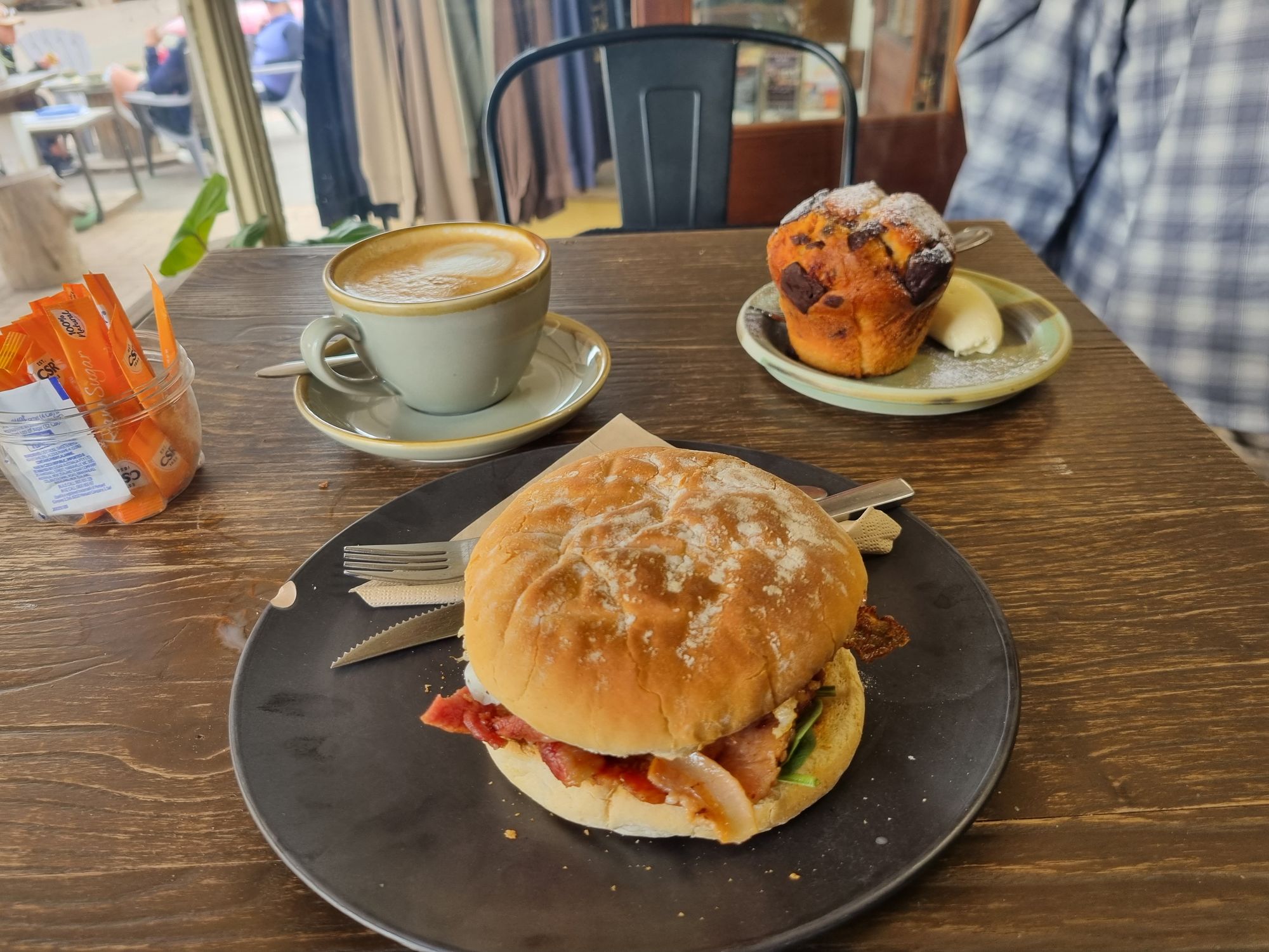 Six kilometres later, I've built up an appetite and the first cafe in town is finally open.