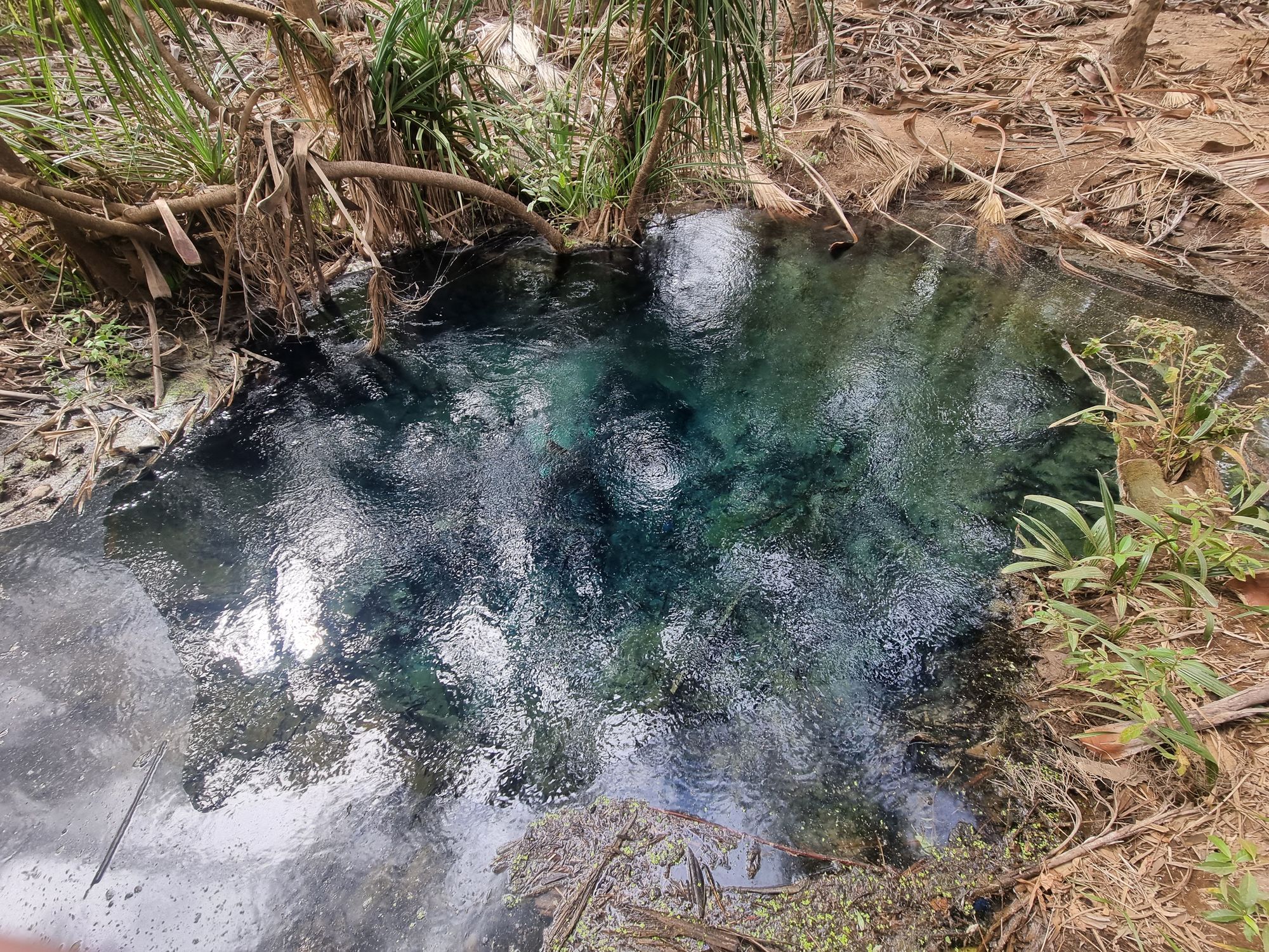 It's also butts up to the Roper River. A real river, with actual water in it, not like the last thousand kilometres. So I head to the Mataranka Thermal Pools for a hike and a dip.